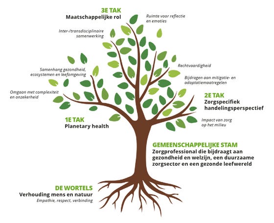 De NFU-visie is hier na te slaan: https://www.nfu.nl/actueel/nfu-visiedocument-onderwijs-helpt-de-zorg-verduurzamen. De afbeelding hieronder geeft de drie hoofdthema’s schematisch weer, samen met wat aanvullende informatie: